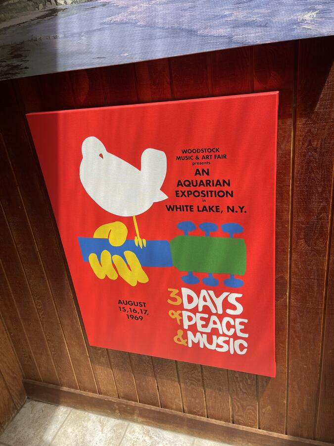 "This canvas print is nicely framed and sturdy, the colors are rich and resisting the sun glare from the skylight in this pool house room above it. It’s very close to the original 1969 artwork and that’s important for a Woodstock 1969 fan like me! It was well protected in shipping and is especially fun to look out in the summer when the origi..."
