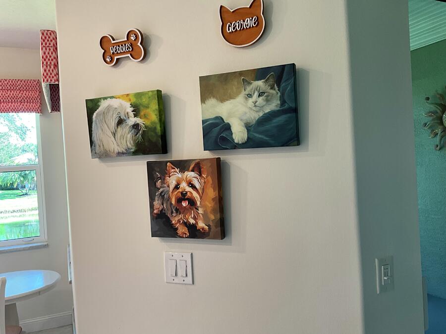 "This picture is a replica of my Sweetie. It graces the wall with the canvases of her sister and brother purchased a few years ago from Fine Art America."